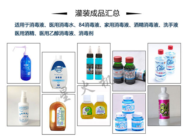 星火84消毒液灌裝流水線適用產(chǎn)品展示