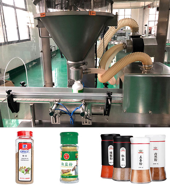 瓶裝椒鹽粉包裝機(jī)械設(shè)備細(xì)節(jié)及灌裝樣品