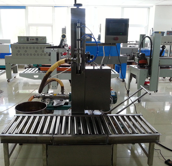 為了迎接一年一度的中秋節(jié),合肥澳特包裝機(jī)械有限公司特退出新產(chǎn)品-XH-50A型自動(dòng)稱重式大劑量灌裝機(jī),專門針對各種液體,膏體,醬料,火鍋底料的大劑量灌裝,借此在感謝一直以來支持我公司的新老顧客,價(jià)格低,質(zhì)量高,其工作原理主要是由稱重傳感平臺在微電腦程序控制下設(shè)定計(jì)量。灌裝時(shí)先去除皮重。物料在注入容器時(shí)先大量快速進(jìn)料后慢速小計(jì)量修正計(jì)量。操作者只需講容器防入平臺、口對下料嘴,此時(shí)程序啟動(dòng),下料嘴下降,打開灌裝閥進(jìn)料,當(dāng)達(dá)到設(shè)定量時(shí)自動(dòng)停止補(bǔ)料,下料嘴上升,完成灌裝過程。灌裝嘴采用汽缸封閉技術(shù),防滴漏,防拉絲.