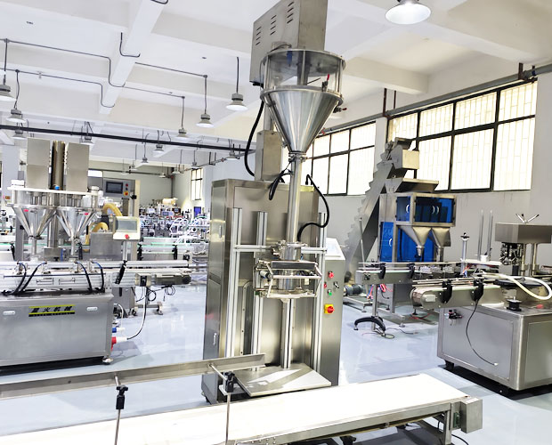 由螺旋上料機(jī)將物料輸送到包裝機(jī)料倉(cāng)內(nèi),人工往夾袋器上套袋,給機(jī)器一個(gè)夾袋信號(hào),夾袋器自動(dòng)把袋子夾住,隨后稱重式粉劑包裝機(jī)開始按照預(yù)設(shè)的包裝參數(shù),向包裝袋內(nèi)填充物料,快-中-慢三段式自動(dòng)填充,保證包裝速度和精度,達(dá)到預(yù)設(shè)重量后,自動(dòng)停止下料,加袋子自動(dòng)松開,隨著輸送帶的移動(dòng),被包裝好的袋子被送到真空封口機(jī)的位置進(jìn)行真空封口,隨后繼續(xù)向后移動(dòng),完成自動(dòng)縫包,整個(gè)過程結(jié)束。