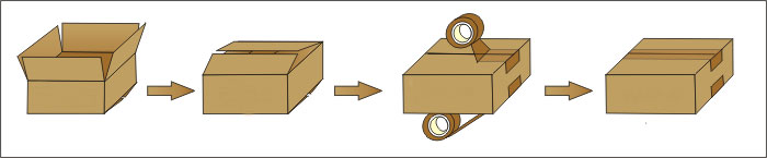 人工推入————————自動折蓋——————————上下封箱—————————封箱完成