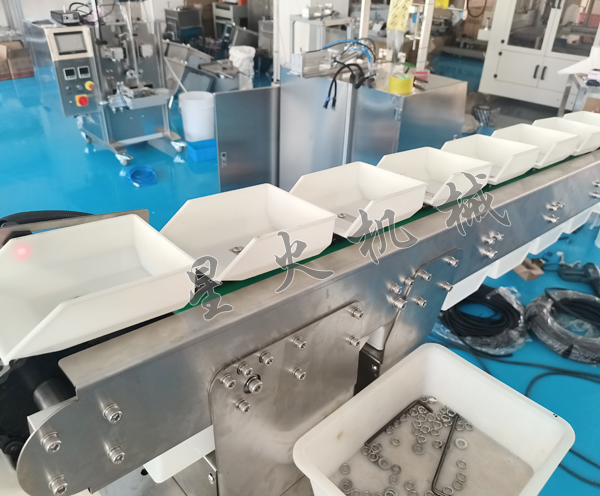 2.鏈斗運(yùn)輸帶:根據(jù)需求定制物料運(yùn)輸鏈斗,適合多種混合物料包裝,人工投料,鏈斗輸送,自動(dòng)完成制袋、充填、封口等步驟連續(xù)運(yùn)行流暢,不卡頓。
