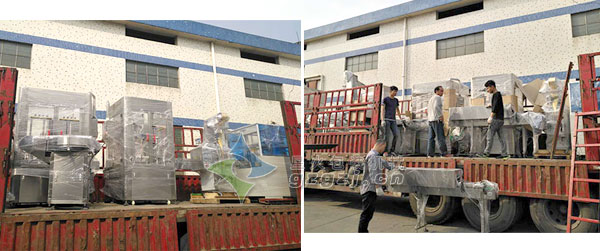 興萬家調(diào)味品廠家采購的雞精調(diào)味粉包裝機-調(diào)味粉包裝生產(chǎn)線裝車