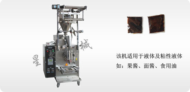 該自動(dòng)醬體包裝機(jī)適用于有流動(dòng)性的液體及粘性液體、如果醬、面醬、食用油、礦泉水、果汁、發(fā)乳等多種液體和膏體的定量灌裝及全自動(dòng)包裝。