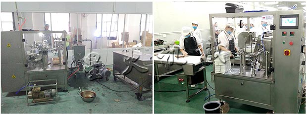 客戶車間-調(diào)味醬包裝機/全自動調(diào)味醬包裝機應(yīng)用現(xiàn)場: