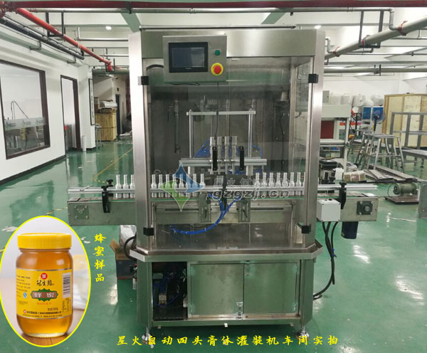自動四頭膏體灌裝機廣泛適用于各種半流體、膏體、粘稠體、醬料和各種含顆料物料的灌裝,如含果肉飲料、蜂蜜、糖漿、果醬、花生醬、芝麻醬、番茄醬、辣椒醬、豆瓣醬、蝦醬、蘋果醬、沙拉醬、魚子醬、辣醬以及各類膏狀物。