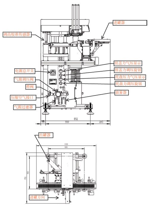 進(jìn)罐機(jī)臺(tái)高度:進(jìn)罐平面高度最低830 毫米。